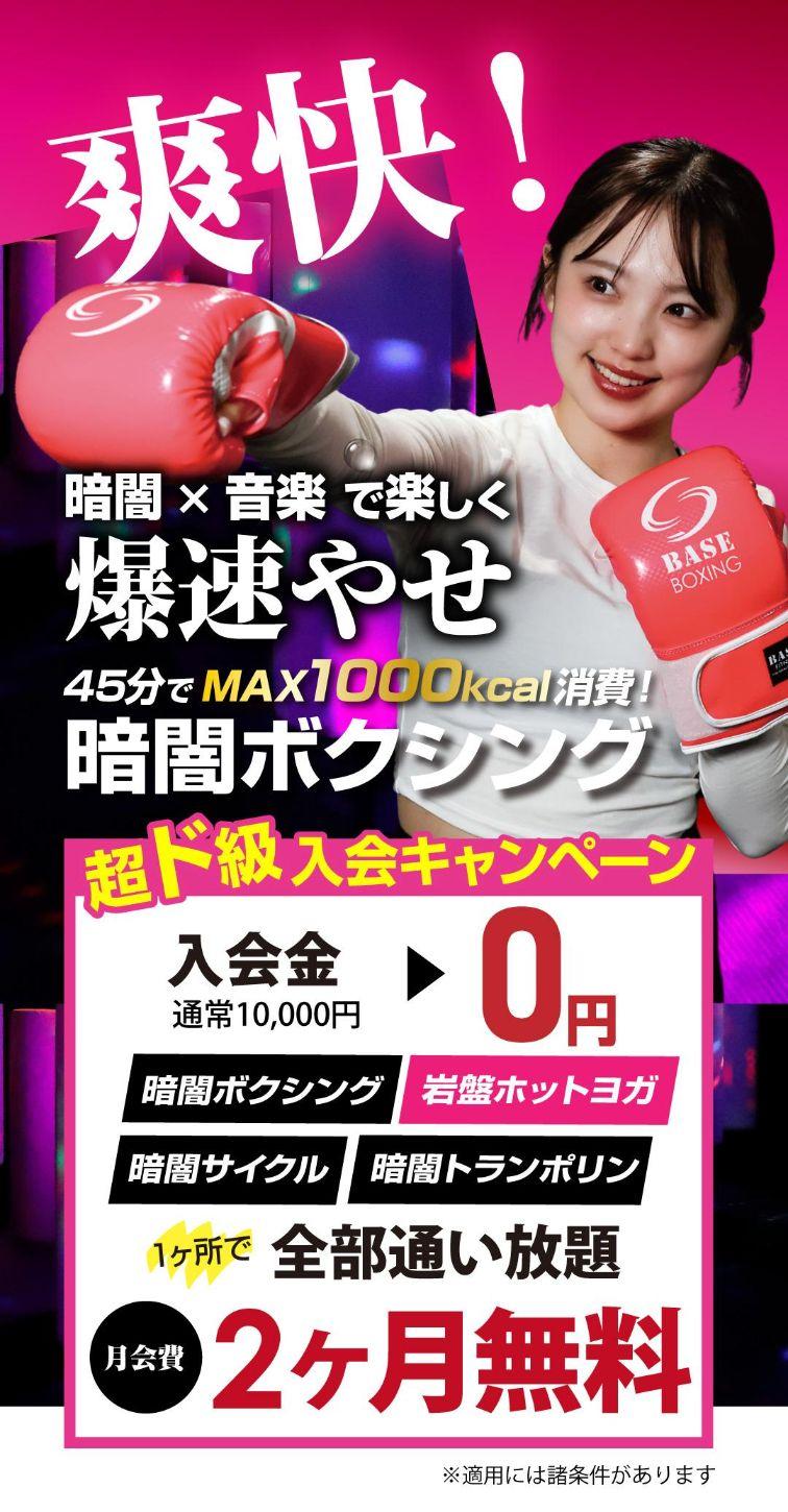 まずは、WEBまたはお電話でご予約ください。体験は、暗闇ボクシング&キックボクシング(BASEBOXING)、岩盤ホットヨガ(YOGA BREEZE)、暗闇サイクル(BASE CYCLE)、暗闇トランポリン(BASE BOUNCE)もお選びいたけます。